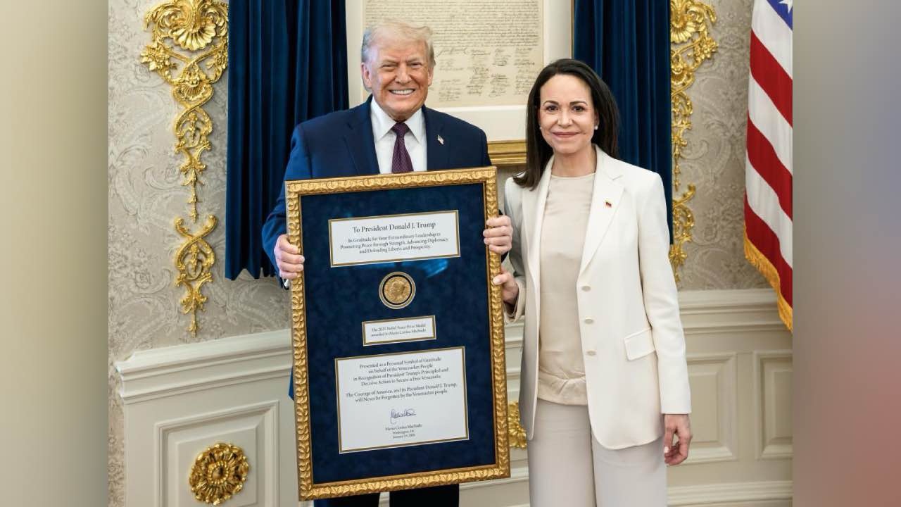 Trump lo celebró en Truth Social: «María me entregó su Premio Nobel de la Paz por el trabajo que he realizado. ¡Un gesto maravilloso de respeto mutuo!».